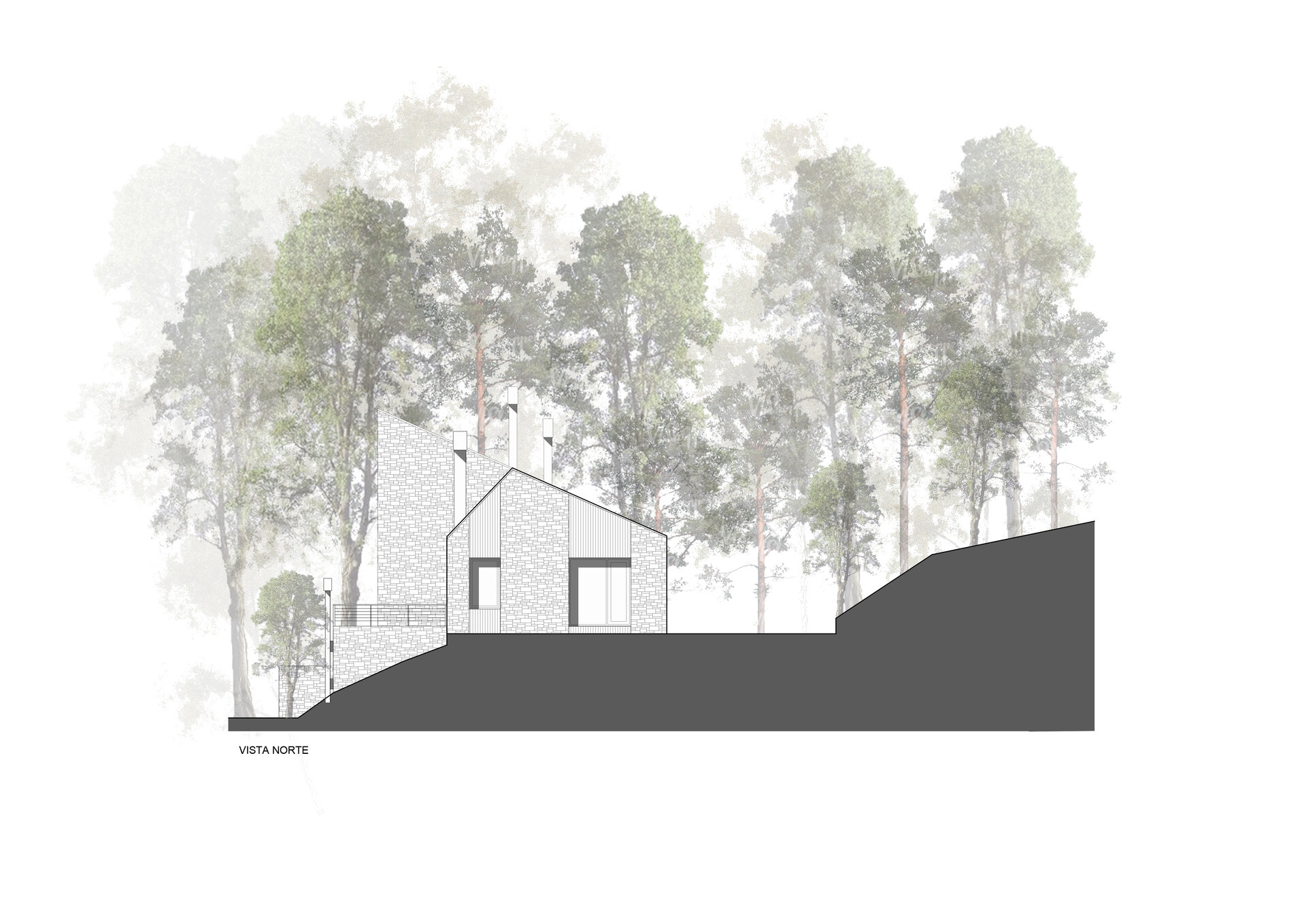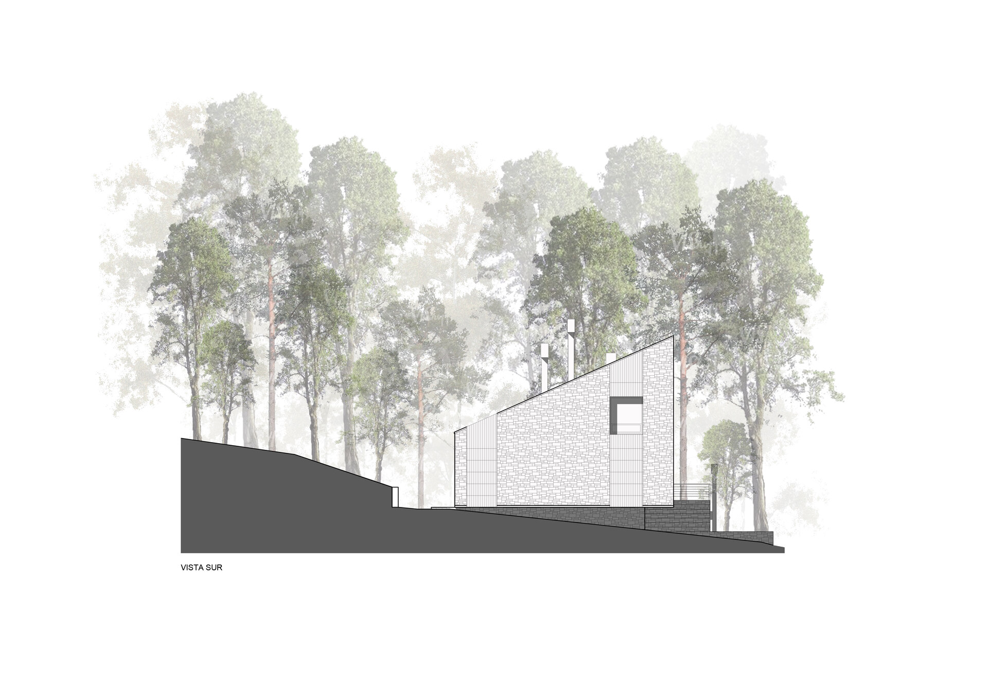 Nos enfrentamos a un terreno de una pendiente moderada para el cual tomamos la decisión de abrirnos hacia el este y hacia las mejores visuales del cordón Chapelco, dejando el ingreso del sol por la tarde.