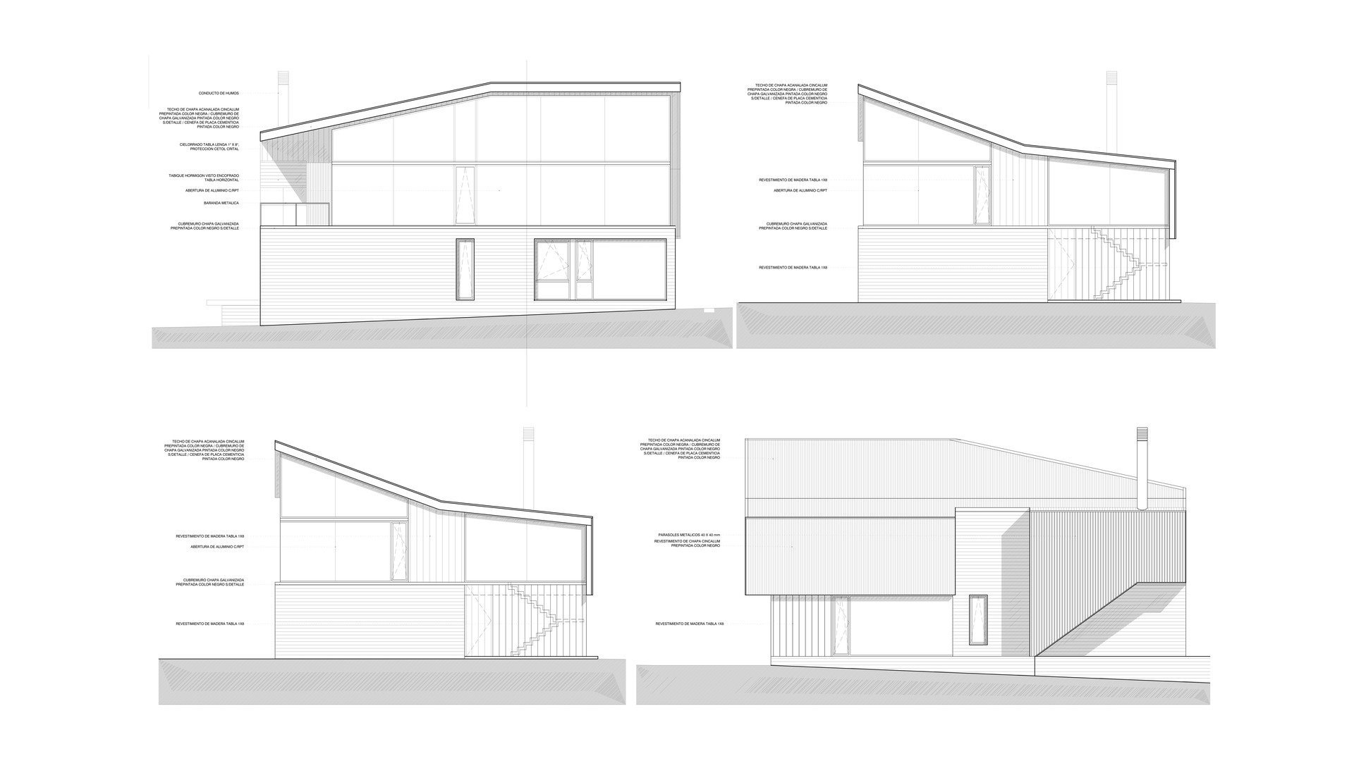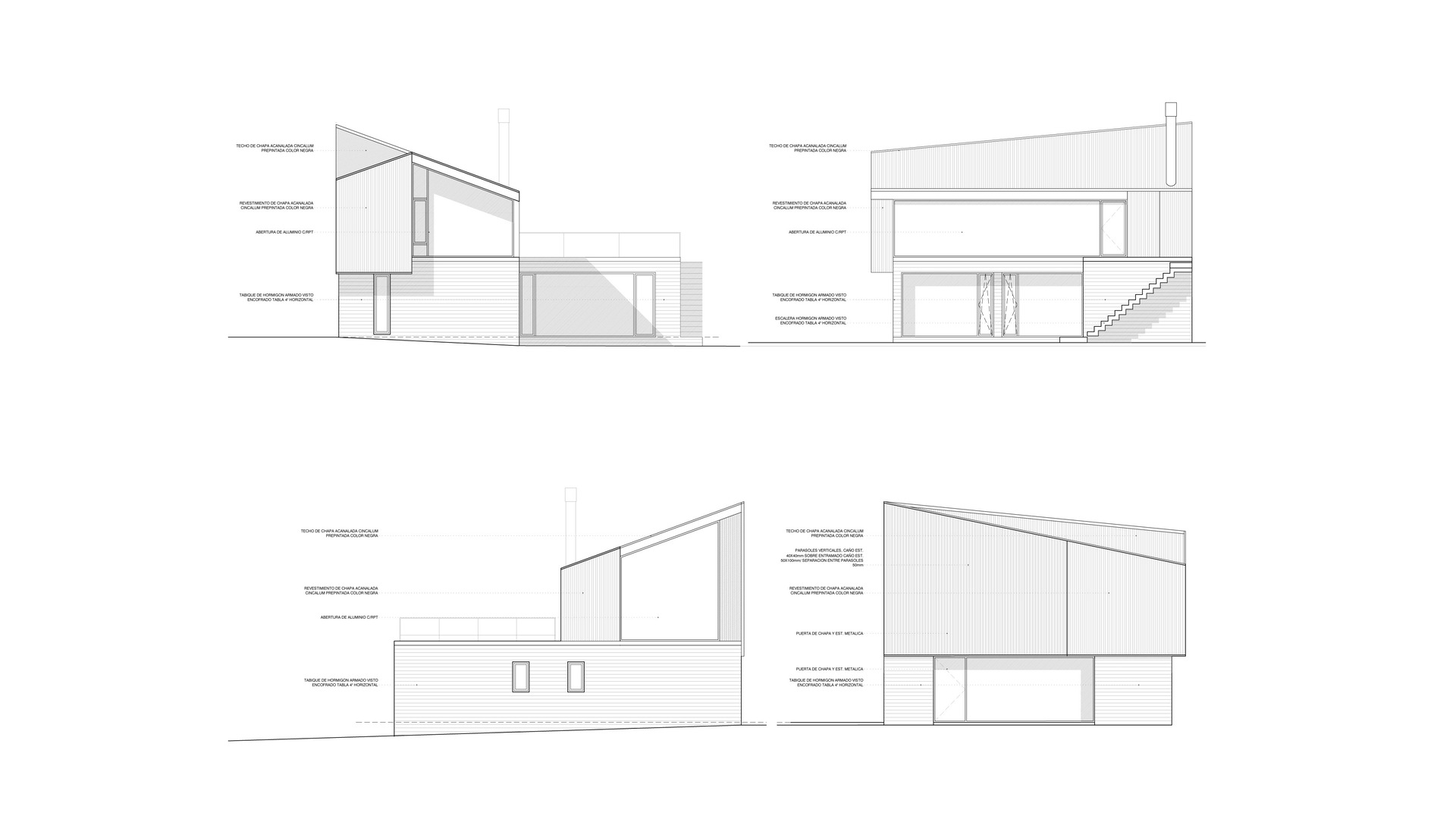 Se utilizo, madera, chapa y Hormigón de tablas de un modo austero y rustico.